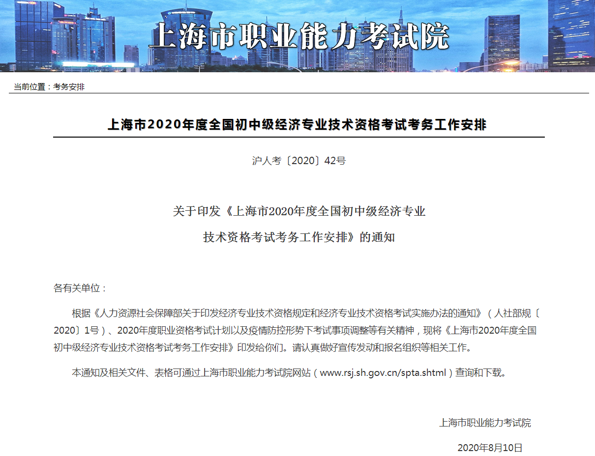 上海市2020年度全国中级注册安全工程师职业资格考试考务工作安排