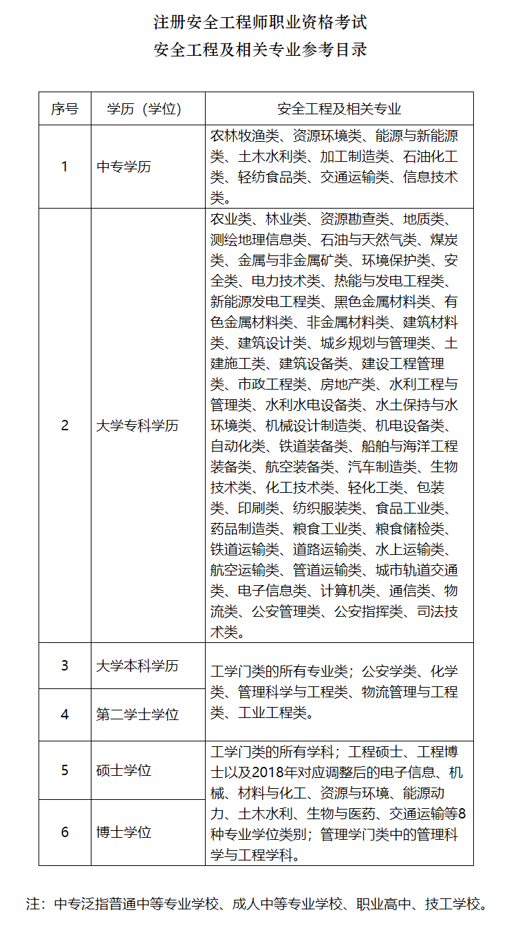 附件:1、注册安全工程师职业资格考试安全工程及相关专业参考目录
