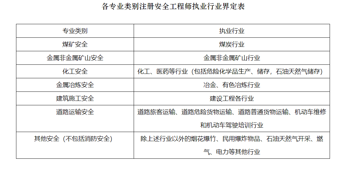 2、各专业类别注册安全工程师执业行业界定表