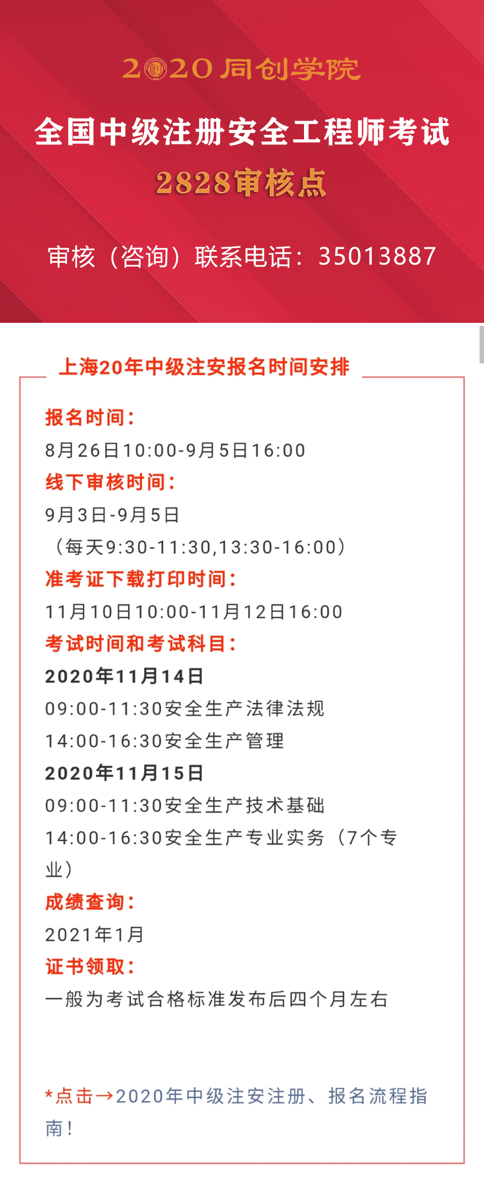 上海20年中级注安报名时间安排