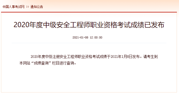 2020年中级安全工程师成绩已出!各位考生抓紧查分啦!