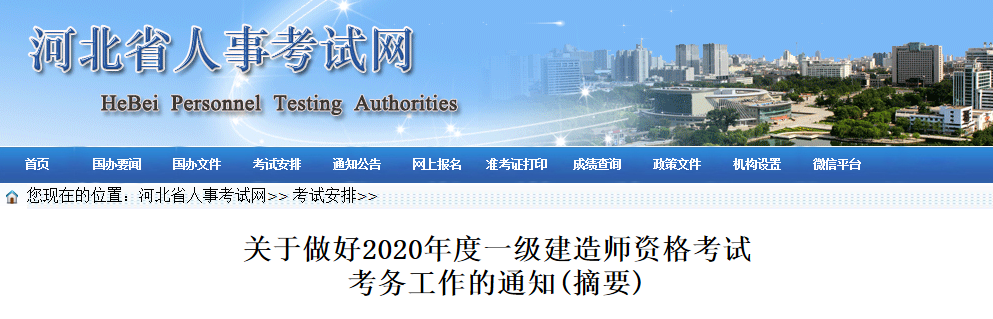 河北省人事考试网发布2020年一级建造师报名时间为7月9日-19日,考试时间为9月19-20日。考试大纲以《一级建造师执业资格考试大纲》(2018年版)为准。