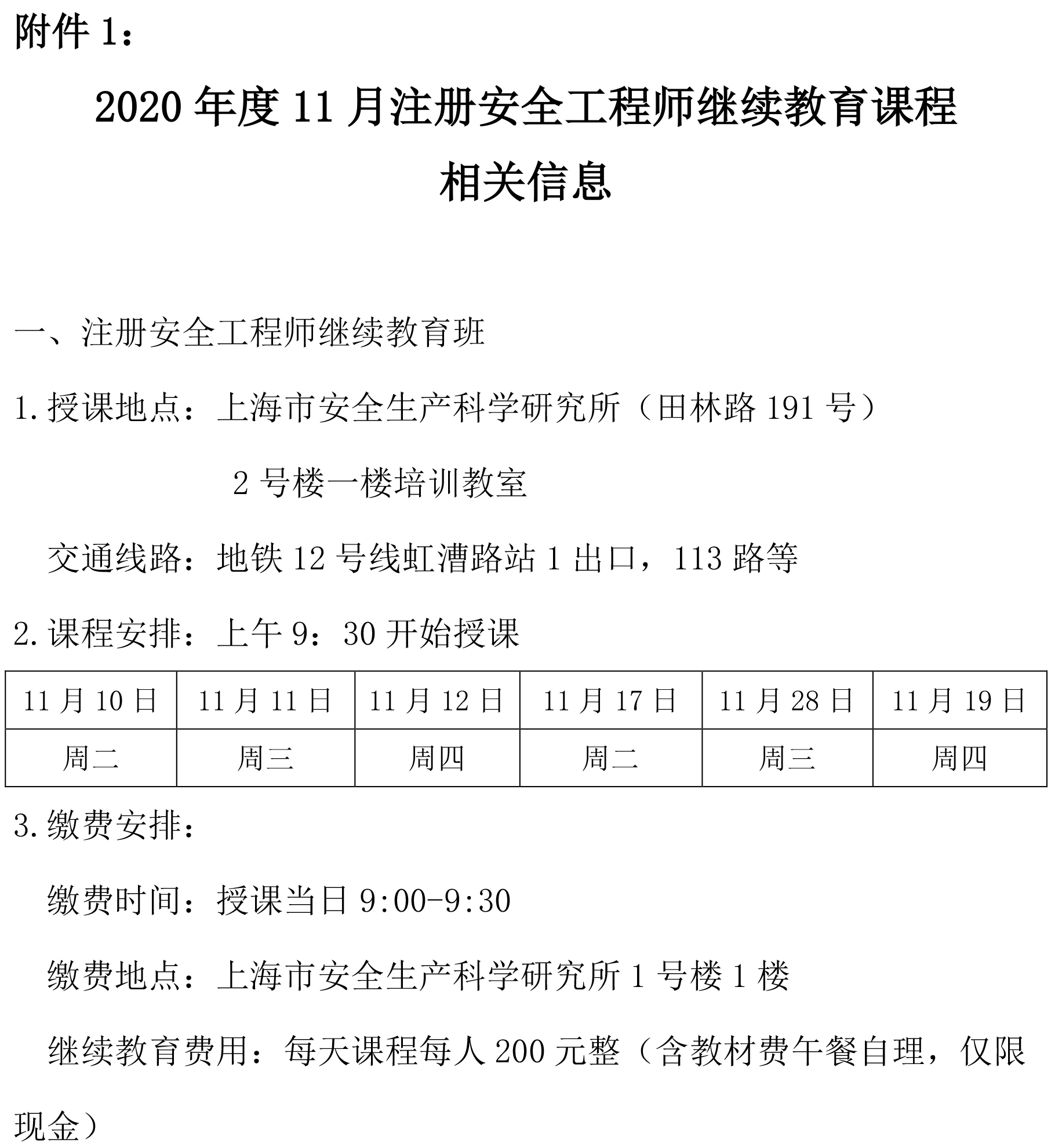 为了做好注册安全工程师注册管理工作,参照国家安全监管总局办公厅《关于做好注册安全工程师恢复注册有关工作的通知》(安监总厅人事〔2017〕83号)相关内容,按照上海市应急管理局的年度工作计划,本市将11月开展2020年10月-11月注册安全工程师继续教育工作。