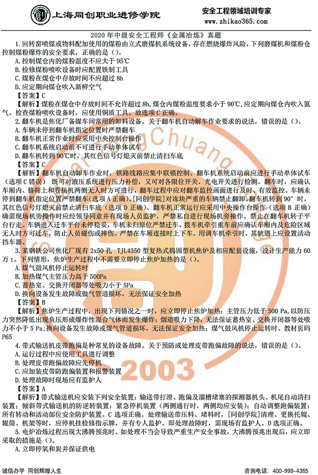 2020年注册安全工程师《安全生产专业实务》-金属冶炼考试真题,答案解析,抢先版~