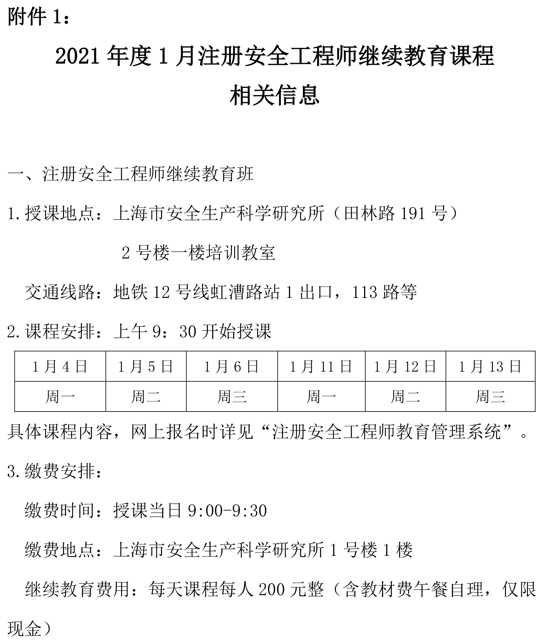 1)请《注册安全工程师执业证》的有效期在2021年6月30日之前的人员,于2020年12月21日—12月22日进入“上海市安全生产科学研究所”网站(www.51safe.com.cn)中的“安全培训”,点击“上海安全工程师继续教育管理系统”,申请相应课程并及时下载课程申请表,打印课程申请表后方可视报名成功。