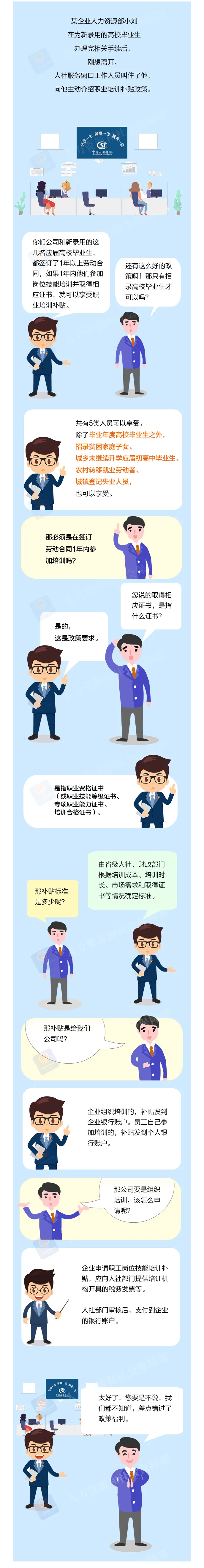 对企业新录用贫困家庭子女、毕业年度高校毕业生、城乡未继续升学应届初高中毕业生、农村转移就业劳动者、城镇登记失业人员等五类人员,签订1年以上期限劳动合同、并于签订劳动合同之日起1年内,参加岗位技能培训的,取得职业资格证书后给予职工个人或企业职业培训补贴。